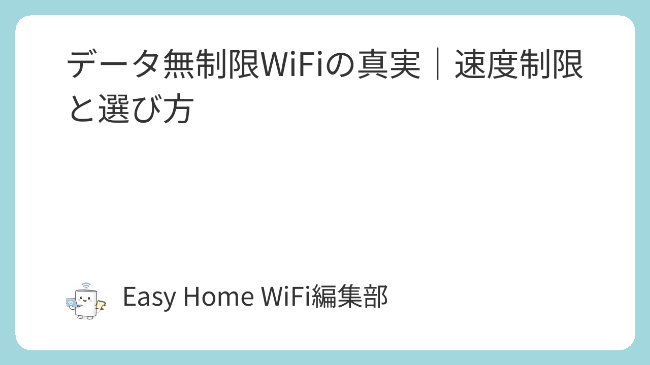 この記事では、データ無制限WiFiの仕組みと速度制限の実態、ポケットWiFiやホームルーターごとの違いを分かりやすく解説します。