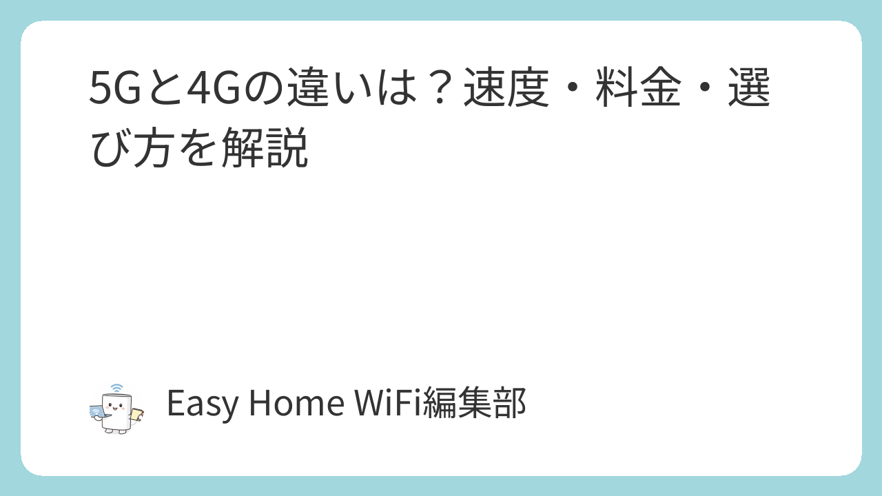 この記事では、5Gと4Gの具体的な違いを速度・料金・対応エリアの観点から整理し、ホームルーターやポケットWiFiでの違いも分かりやすく解説します。