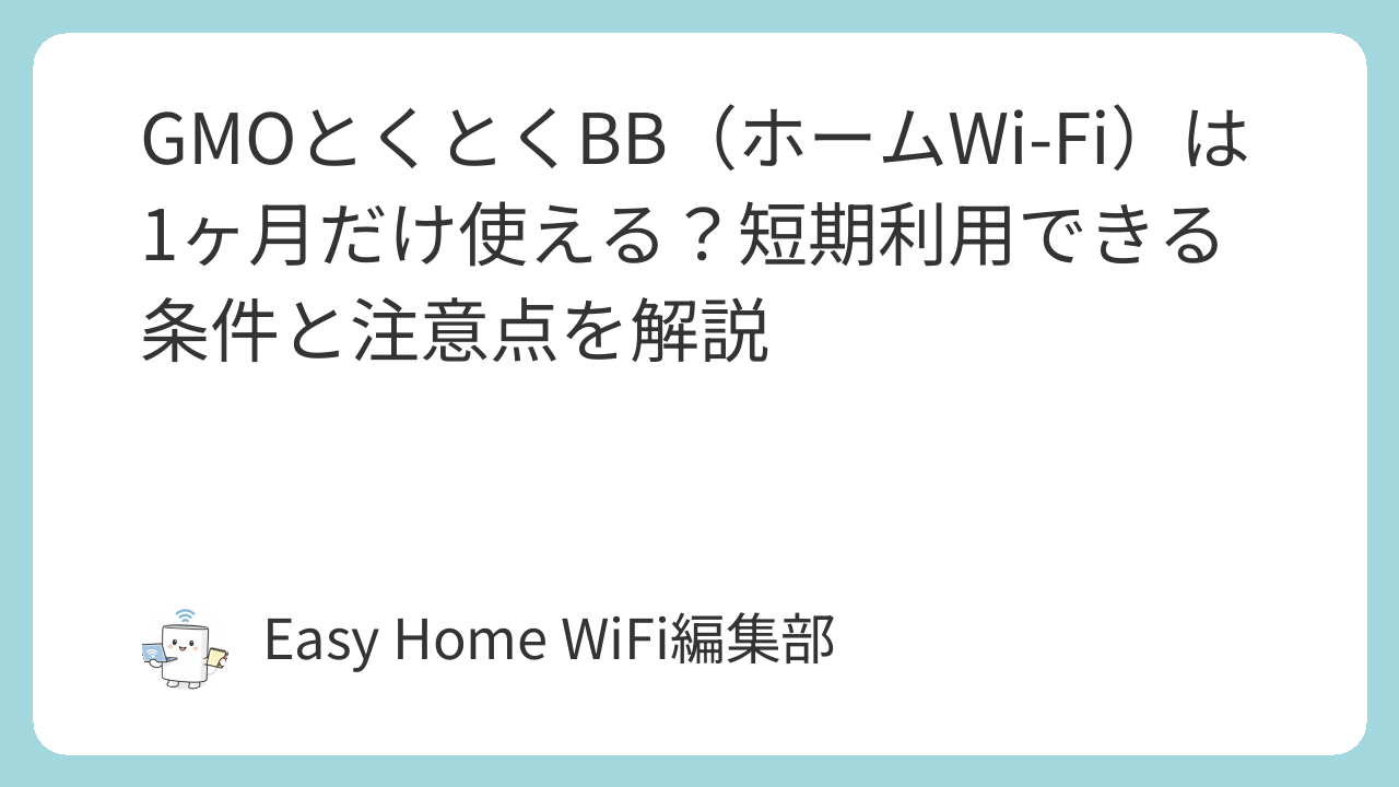 読み進めることで、GMOとくとくBB(ホームWi-Fi)が短期利用目的でも許容できるか、それとも別の選択肢を検討すべきかを冷静に判断できるようになります。