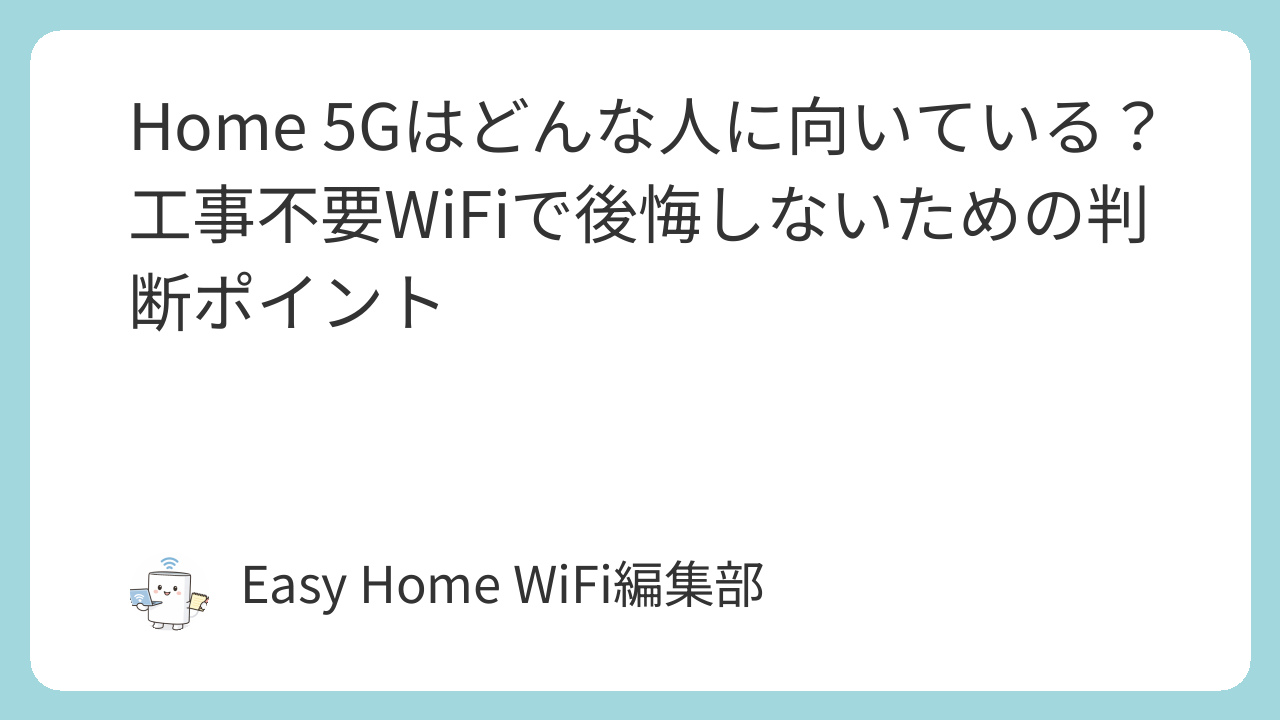 Home 5Gはどんな人に向いている?工事不要WiFiで後悔しないための判断ポイント